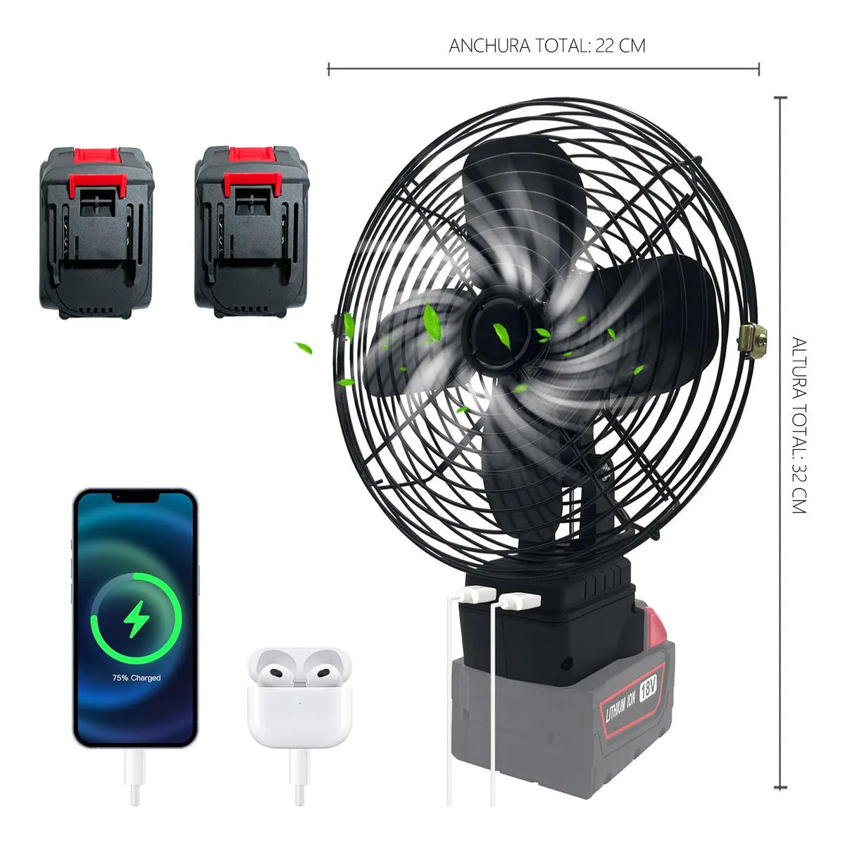 Brisa potente y portátil con doble batería recargable para frescura por horas, con o sin corriente. Ideal para casa, oficina o viajes. 🔋❄️